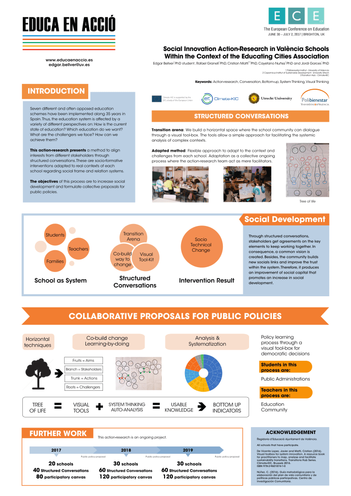 Social Innovation and action-research in schools Action research project introducing system thinking in València Schools within the Context of the Educating Cities Association (2017) Share this: Click to share on X (Opens in new window) X Click to share on Facebook (Opens in new window) Facebook Like Loading... Related Leave a comment Cancel reply Δ